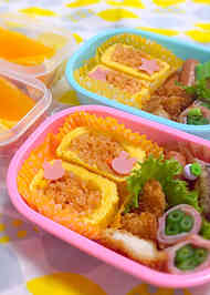 次女の宿泊教室のお弁当の一品に。山頂で食べやすいようにコーンは無しで。 コメント:次女の今年最後の幼稚園のお弁当です♪ フッサフッサの毛が生えちゃいました!!笑 でも